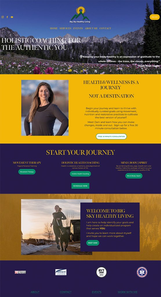 Website design on Squarespace, including copywriting, editing, SEO, and select photos For Big Sky Healthy Living.
