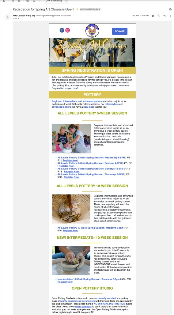 From April 26, 2023, until June 17, 2024, I managed the Arts Council of Big Sky Facebook page.